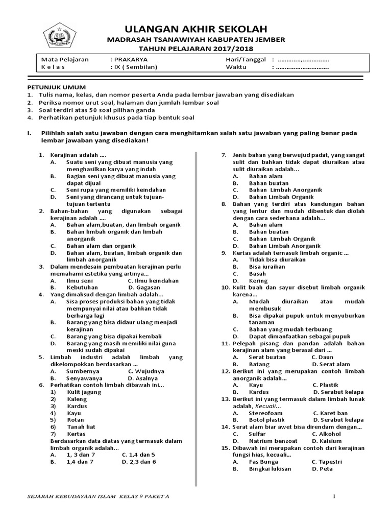 Soal PTS SKI Kelas 8 Semester Genap 20I8-20I9.docx | Perpustakaan …