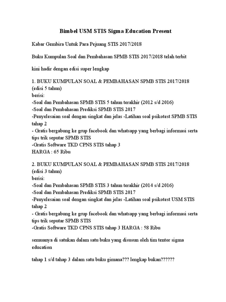 Jual Produk Soal Usm Stis 2017 Murah dan Terlengkap November 2020 | Bukalapak