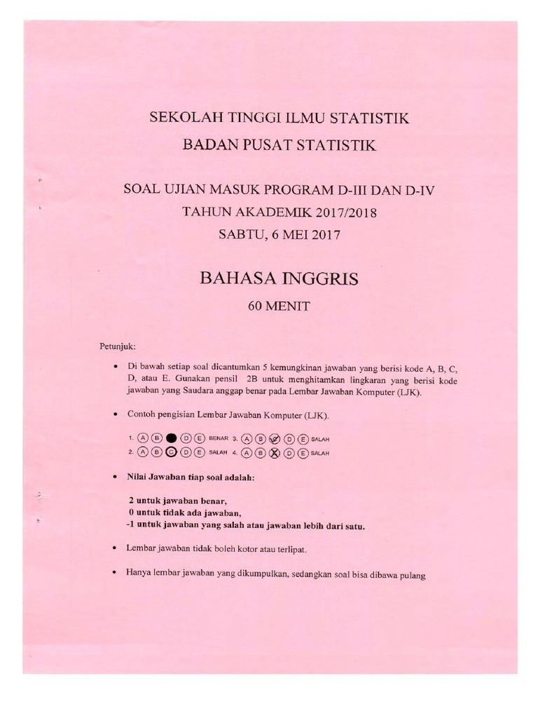 PENDAFTARAN PMB STIS 2017/2018 | SOAL UTBK SBMPTN 2021 DAN PEMBAHASAN [PDF]