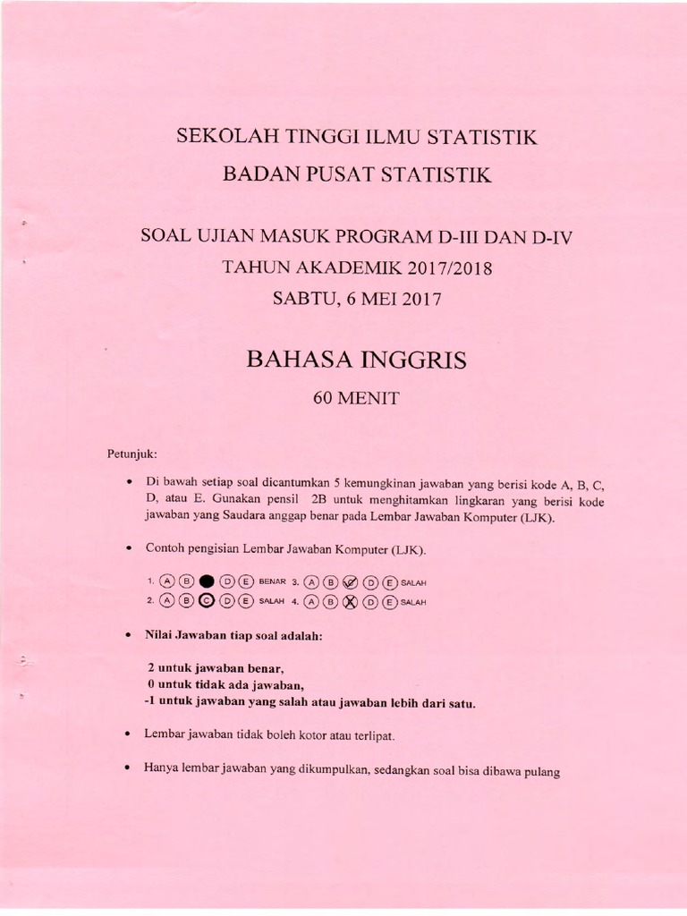 Soal USM STIS 2017 B.inggris Asli [Www.defantri.com]