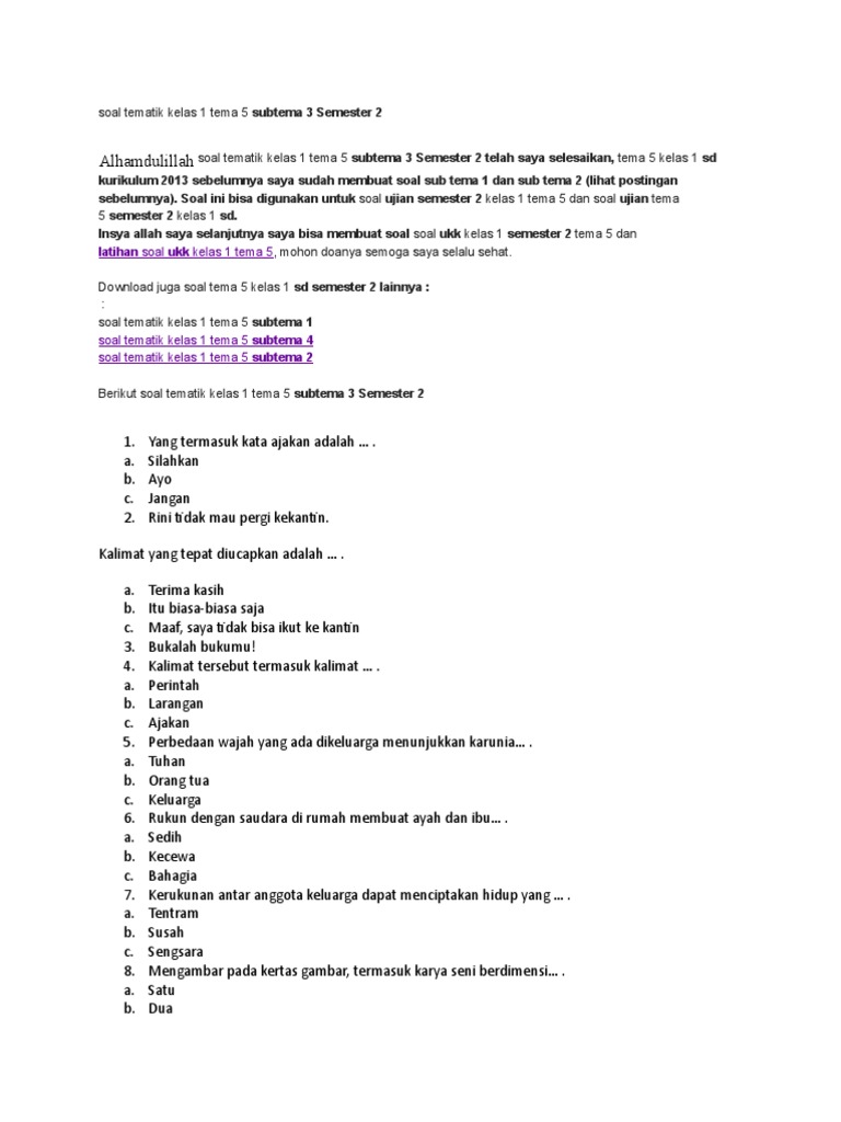 Soal Tematik Kelas 3 Tema 5 Subtema 3 Semester 2 Revisi Yudi …