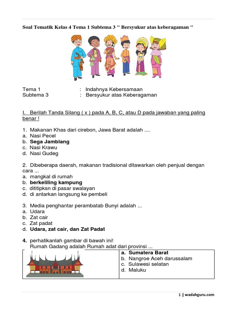 Soal Kelas 4 tema 1 subtema 2 Indahnya kebersamaan - Juru Pendidikan