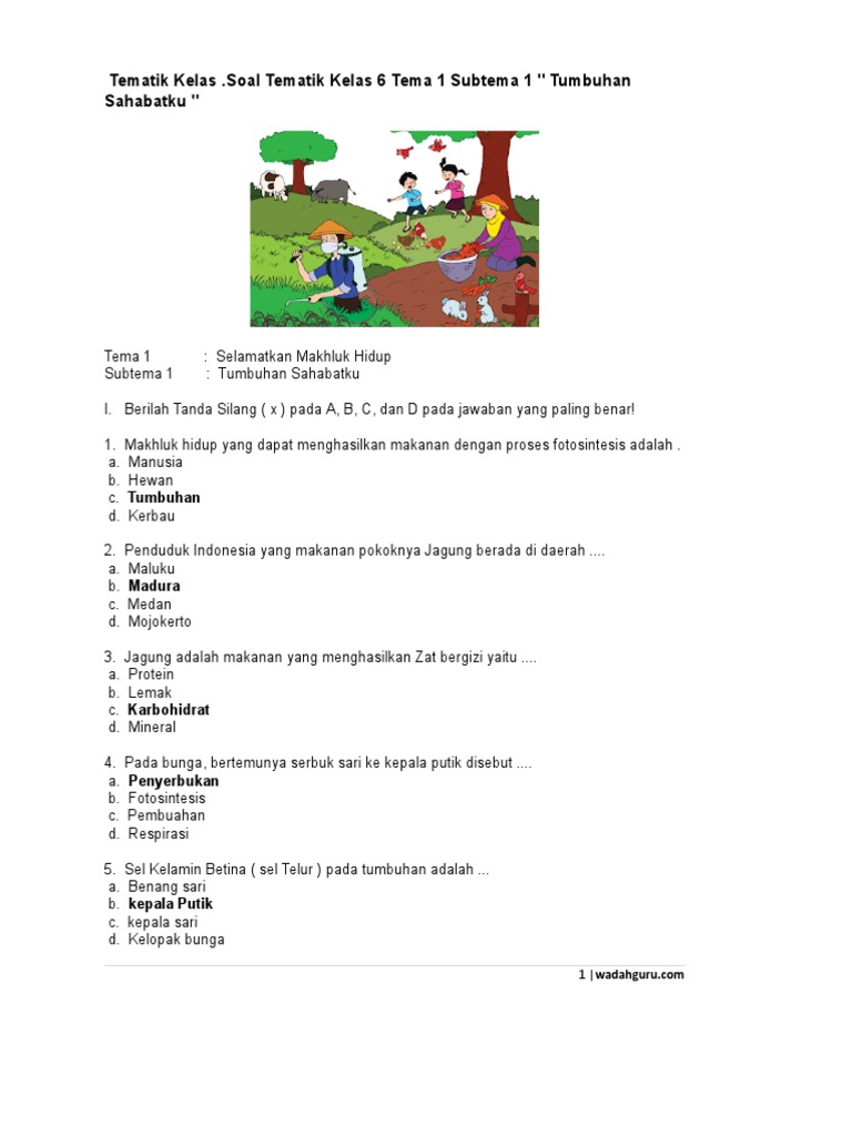 Revisi Soal Tematik Kelas 6 Tema 1 Subtema 1 - Tumbuhan Sahabatku …