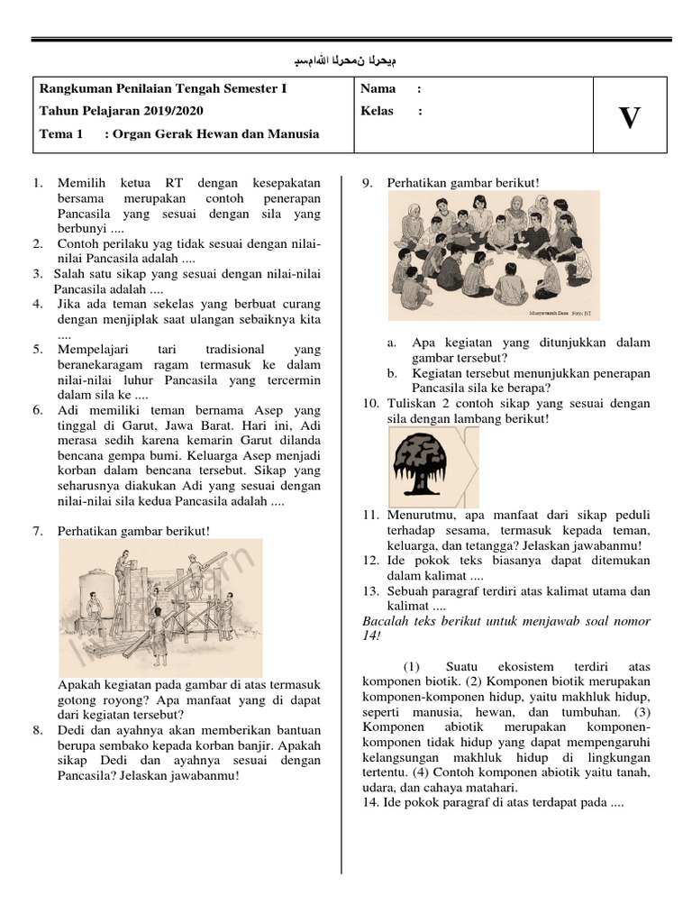 Soal UAS 1 Penilaian Akhir Semester Kelas 5 SD Tema 1 K13 (Bagian I)