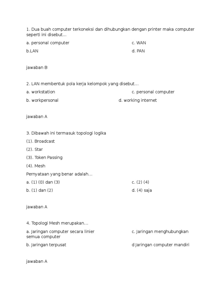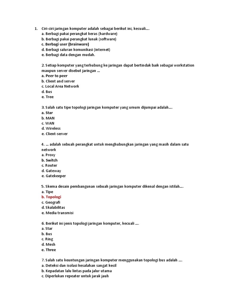 Contoh Soal Pilihan Ganda Jaringan Komputer - Barisan Contoh