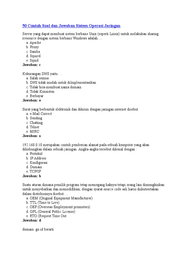 50 Contoh Soal Dan Jawaban Sistem Operasi Jaringan