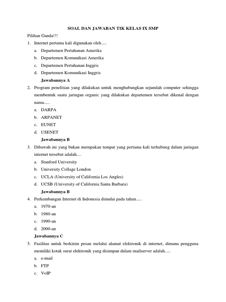Soal Dan Jawaban Tik Kelas Ix Smp