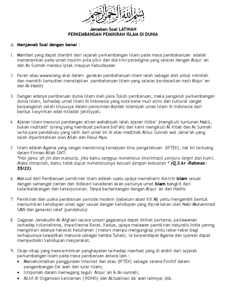 Soal Tentang Perkembangan Islam Pada Masa Modern