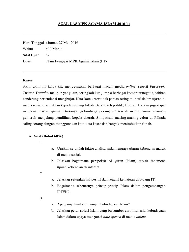 DOC) 70 contoh soal agama islam.docx | Rahma Niar - Academia.edu