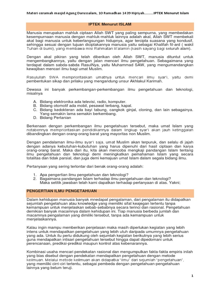Ilmu Pengetahuan dan Teknologi Dalam Pandangan Islam - SMK TELKOM …