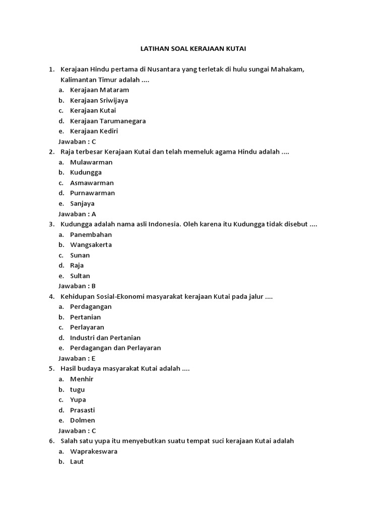 Latihan Soal Kerajaan Kutai