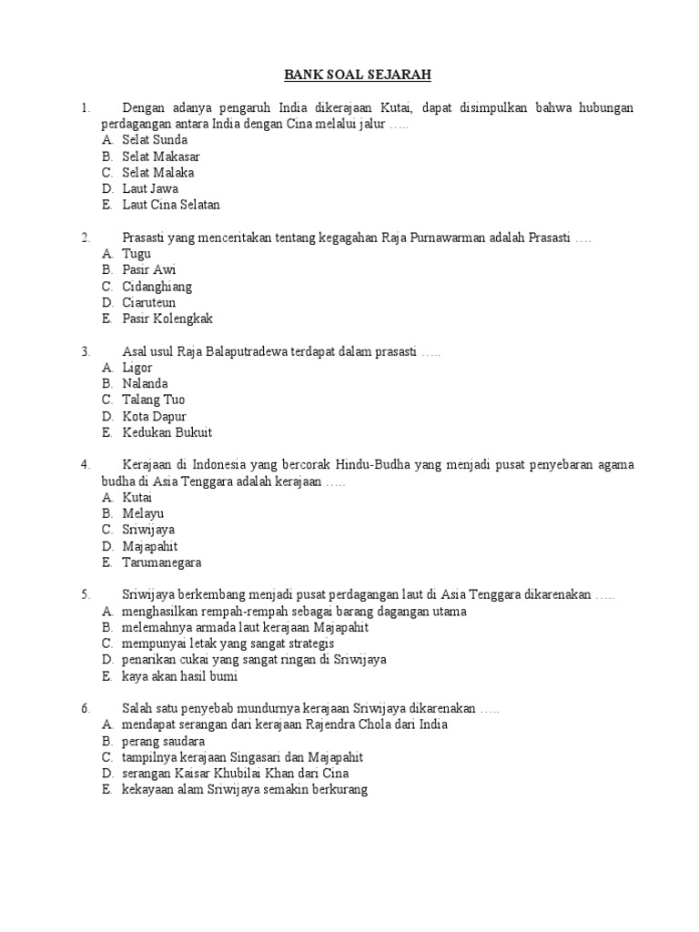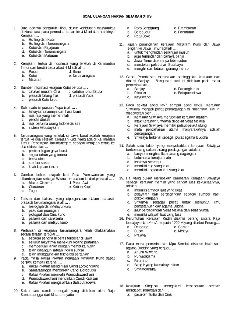 Soal Sejarah Kelas XI Kerajaan Hindu Budha Di Indonesia - Seberkas Cahaya