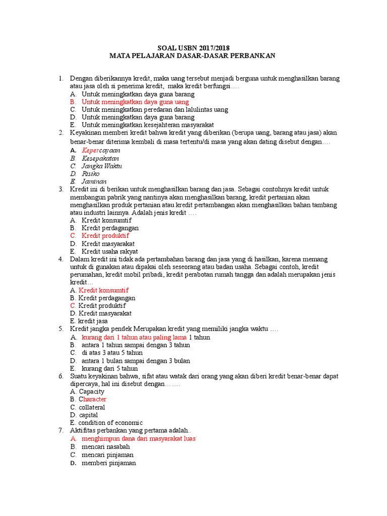 Contoh Soal Dasar Dasar Perbankan Dan Jawabannya - Dapatkan Contoh