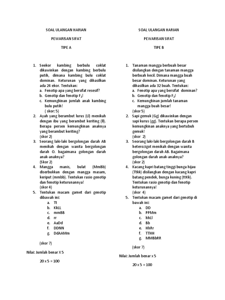 Contoh Soal Pewarisan Sifat Kelas 9 Dan Jawabannya - Contoh Soal Terbaru