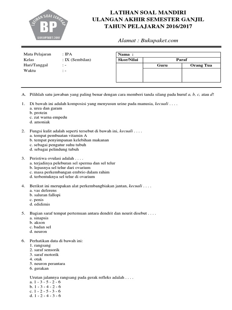 PDF) KISI-KISI SOAL UAS GANJIL IPA SMP KELAS IX, TAHUN 2014-2015 | Yanty Sovina - Academia.edu