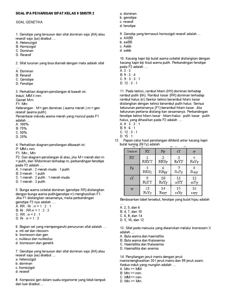 DOC) SOAL IPA PEWARISAN SIFAT KELAS 9 SMSTR 2 | Partomuan Simaremare - Academia.edu