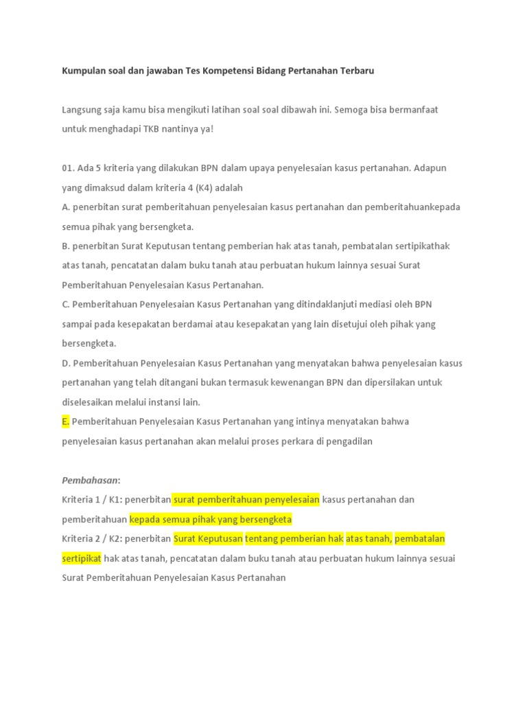 DOC) Kumpulan soal dan jawaban Tes Kompetensi Bidang Pertanahan …