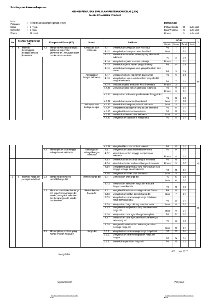 Kisi Kisi UKK PKN Kelas 3 Www Soalbagus Com