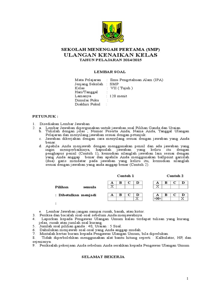 Contoh Soal Ukk Smp Kelas 7 Ipa Kurikulum 2013 - Barisan Contoh