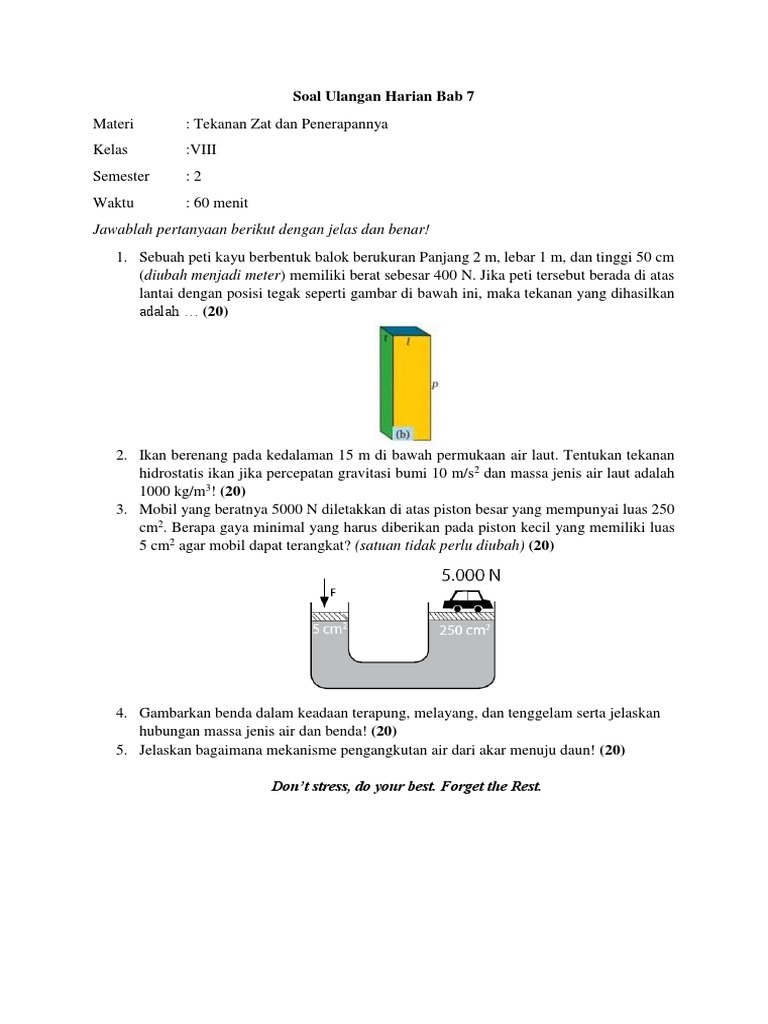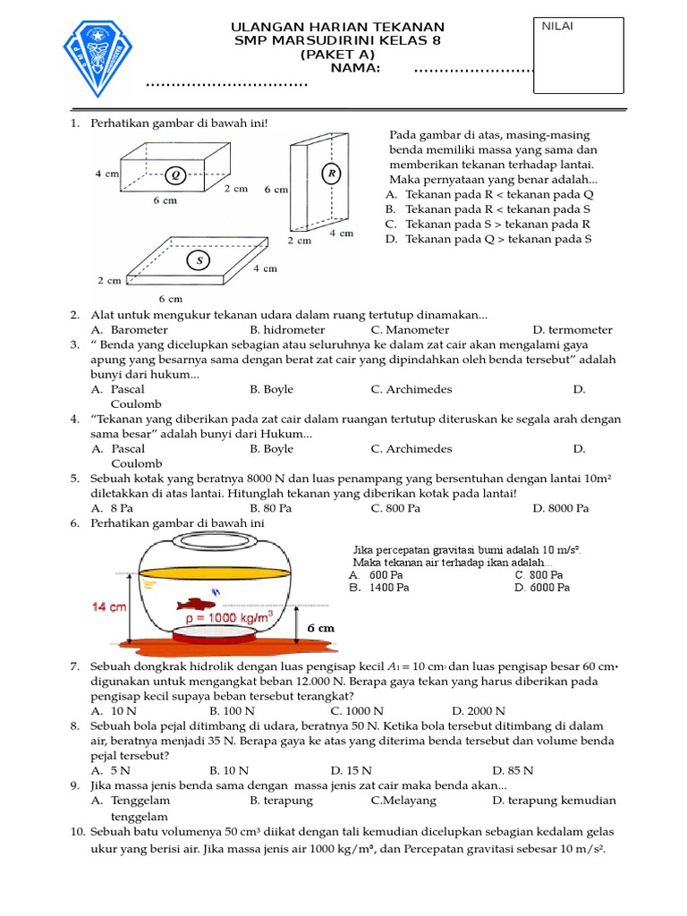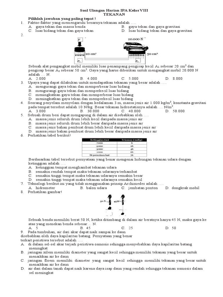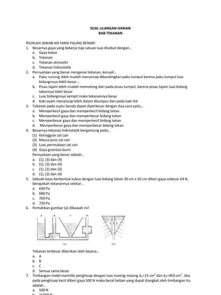 PDF) SOAL DAN PEMBAHASAN ULANGAN IPA FISIKA SMP KELAS 8 TEKANAN …