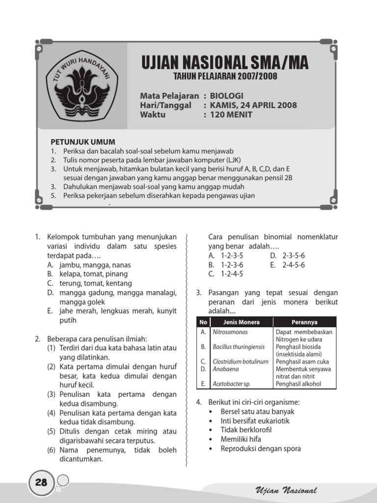 Download “Bocoran” Soal Ujian Nasional Mata Pelajaran Biologi SMA …