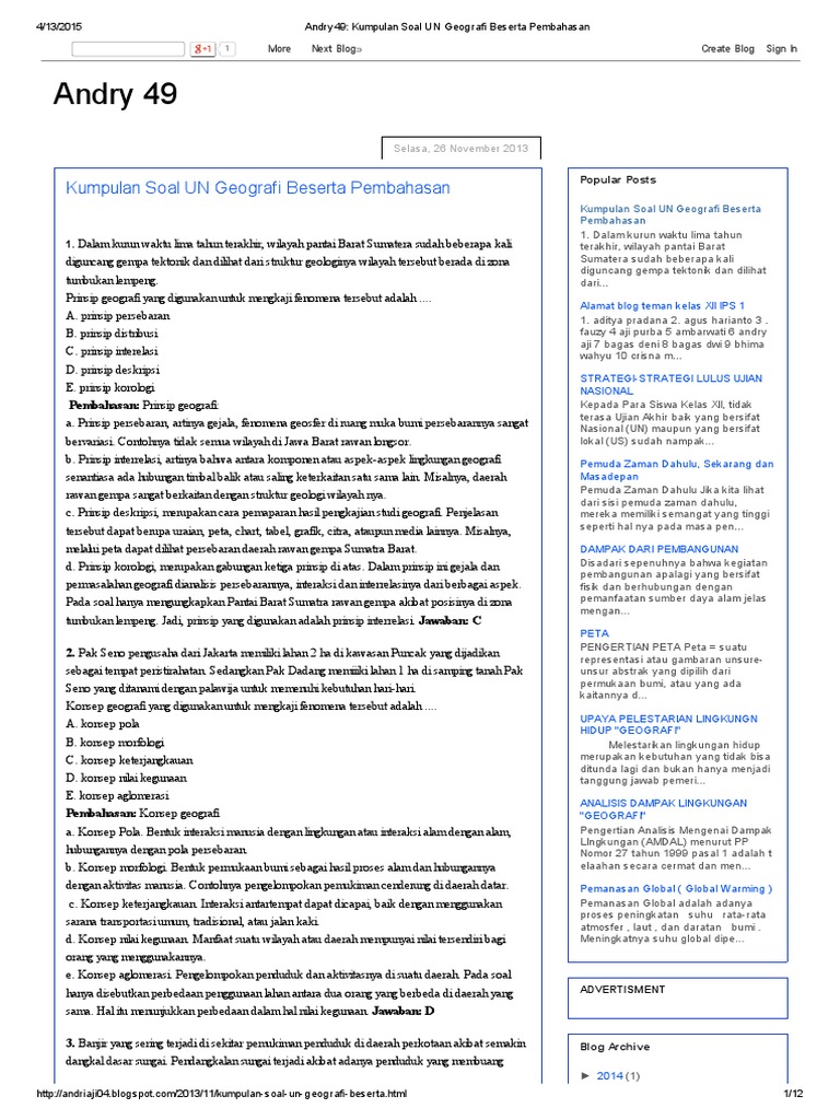 Terbaru Soal Un Geografi Dan Pembahasannya Pdf