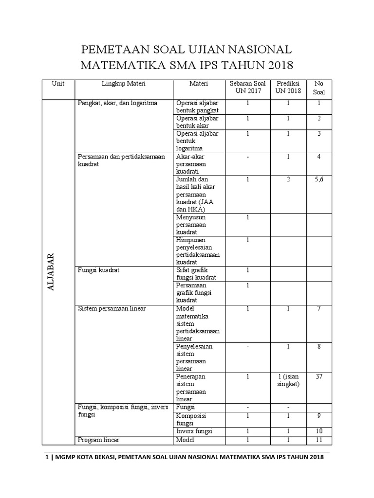 2. Pemetaan Soal Un Matematika Sma Ips Tahun 2018