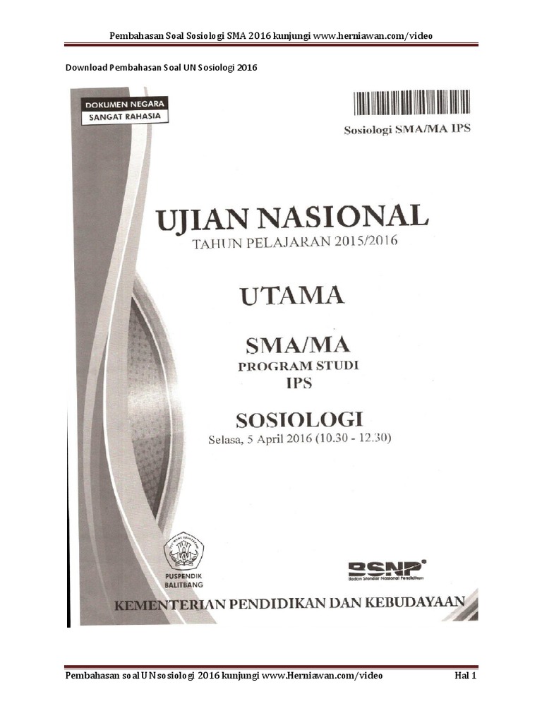 SOAL DAN PEMBAHASAN UN SOSIOLOGI 2016/2017 - YouTube