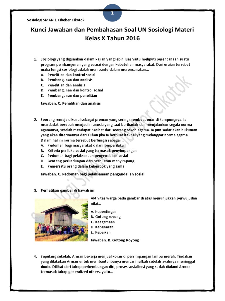 Soal Soal Un Sosiologi Dan Kunci Jawaban - Kanal Jabar