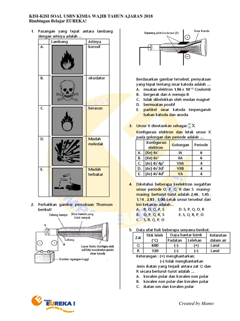 Bocoran Prediksi Soal USBN Kimia SMA 2018 - Kkaktri Channel …