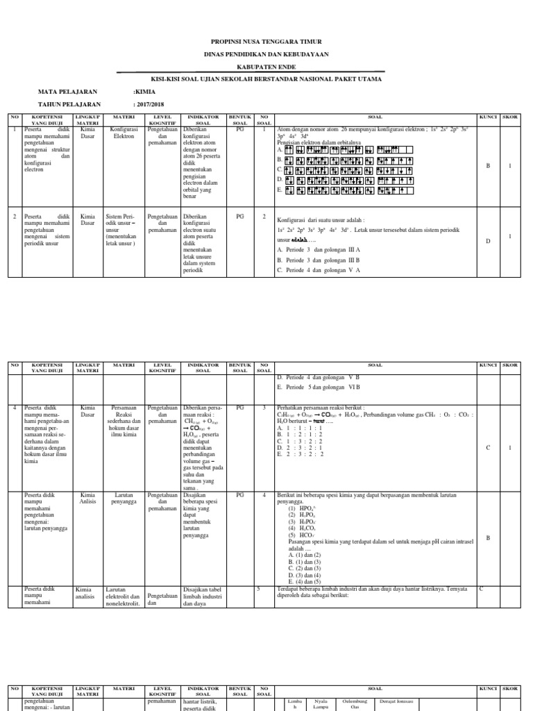 Kisi-kisi USBN 2017/2018 SMA/MA Mapel Kimia Kurikulum 2006/2013 …