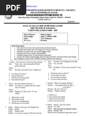 Download Soal UTS Bahasa Inggris SMP Kelas 8 Semester 1 TA 2017 …