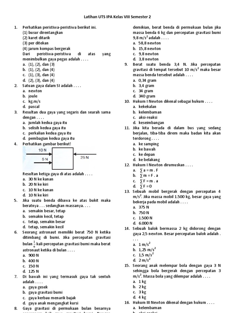 LATIHAN SOAL DAN JAWABAN UTS / PTS IPA KELAS 8 SEMESTER 1 …