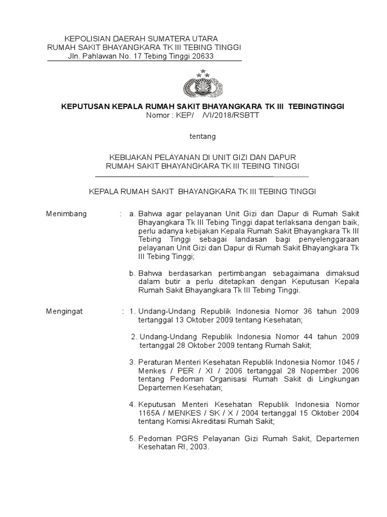 SK KEBIJAKAN Unit Gizi Dan Dapur