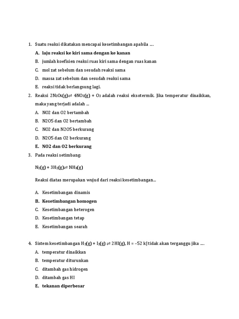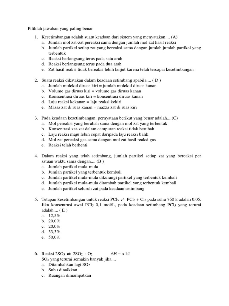 60+ Soal Kesetimbangan Kimia Pilihan Ganda & Jawaban [+Pembahasan]