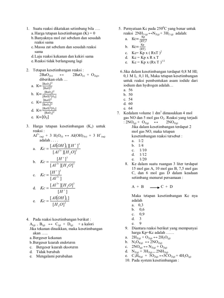 Menghitung Reaksi Kesetimbangan dengan Tetapan Kc Halaman all …