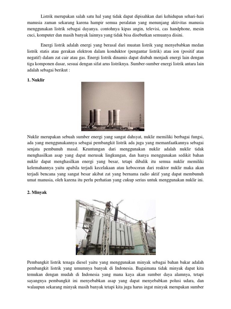 Sumber energi listrik berasal dari bahan bakar minyak dan batubara …