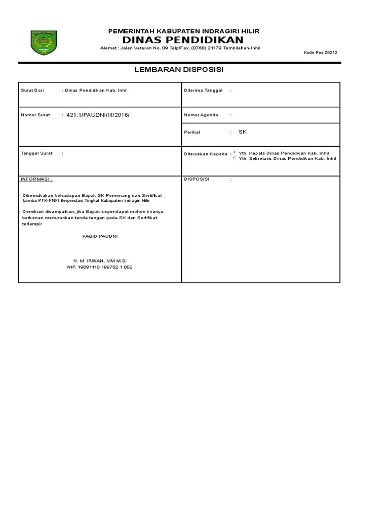 Contoh Lembar Disposisi Surat Masuk - Download Kumpulan Gambar