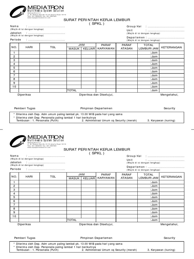 👍 Download Surat Perintah Lembur 👍
