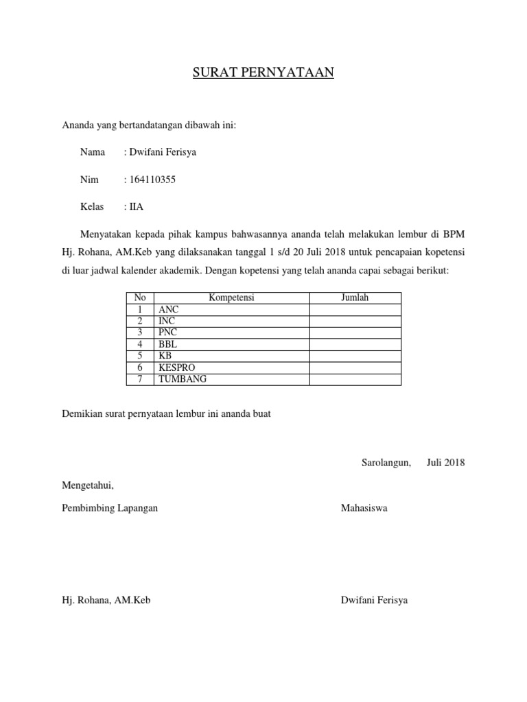 Aneka Contoh Surat Pernyataan Lembur 41 Tentang Inspirasi Desain …