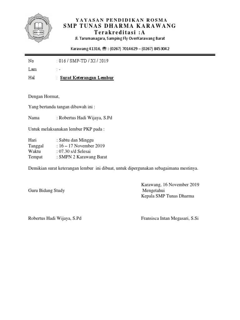DOC) SURAT KETERANGAN LEMBUR | Thomas William - Academia.edu