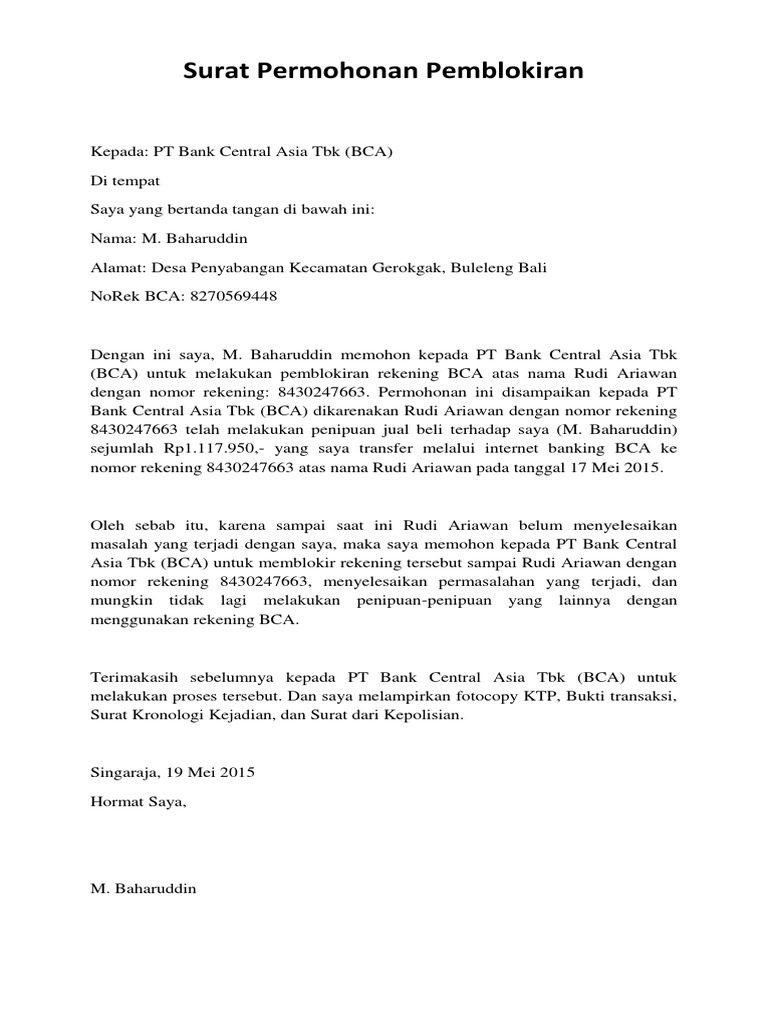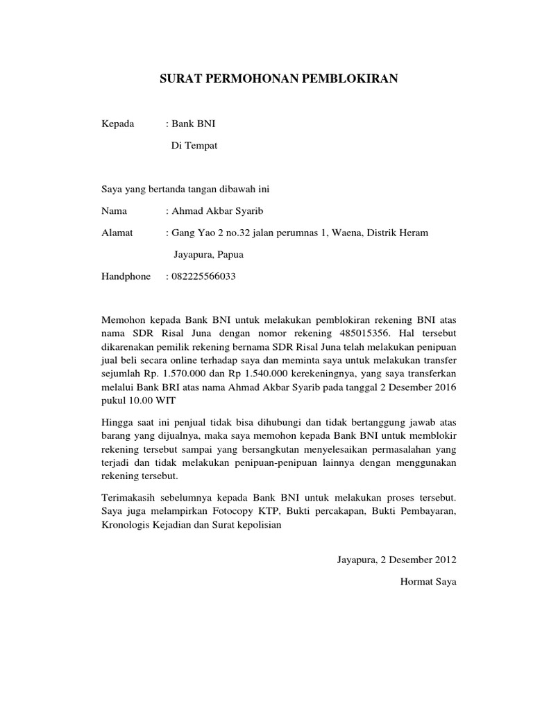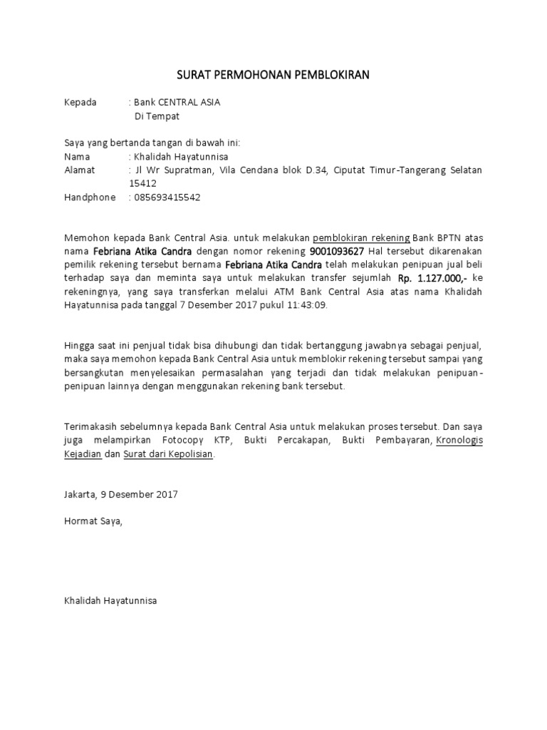 Contoh Surat Permohonan Buka Blokir Rekening Bank β Berbagai Contoh