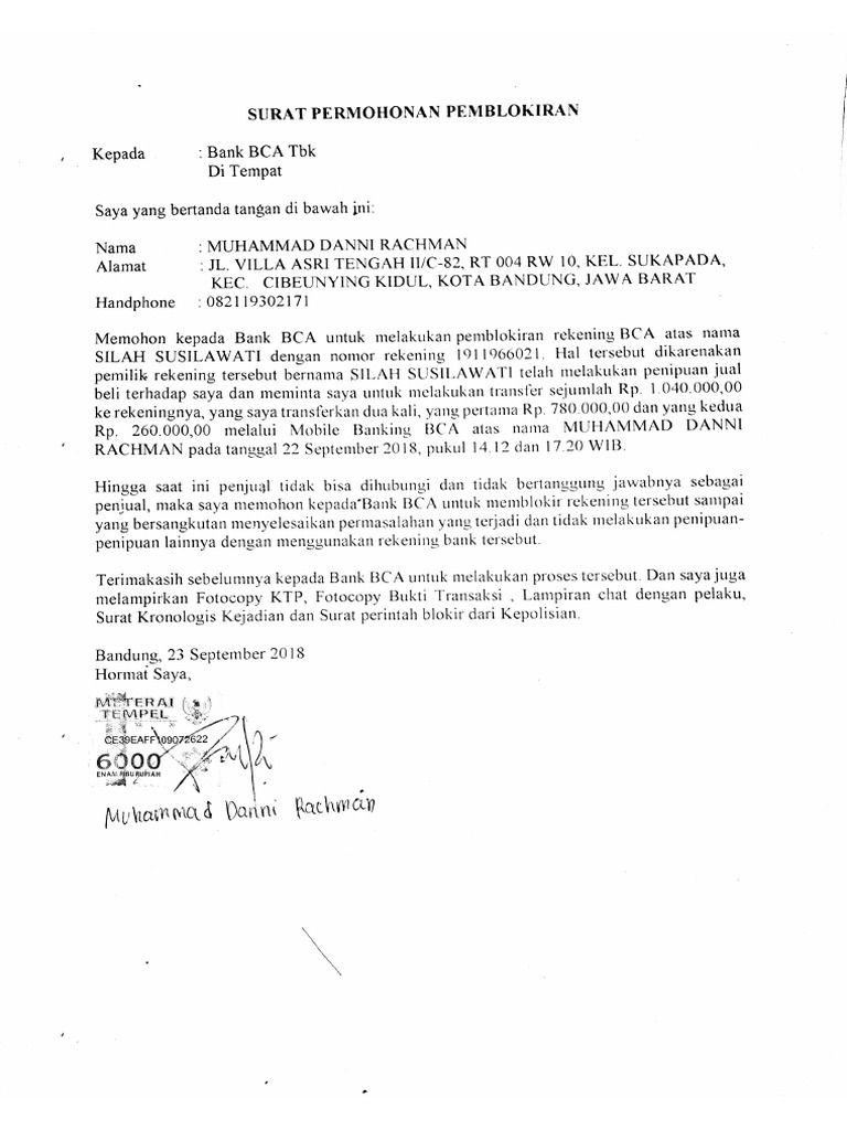 Step By Step, Membuat Surat Permohonan Pemblokiran Rekening Penipu β nya’s sweet escape