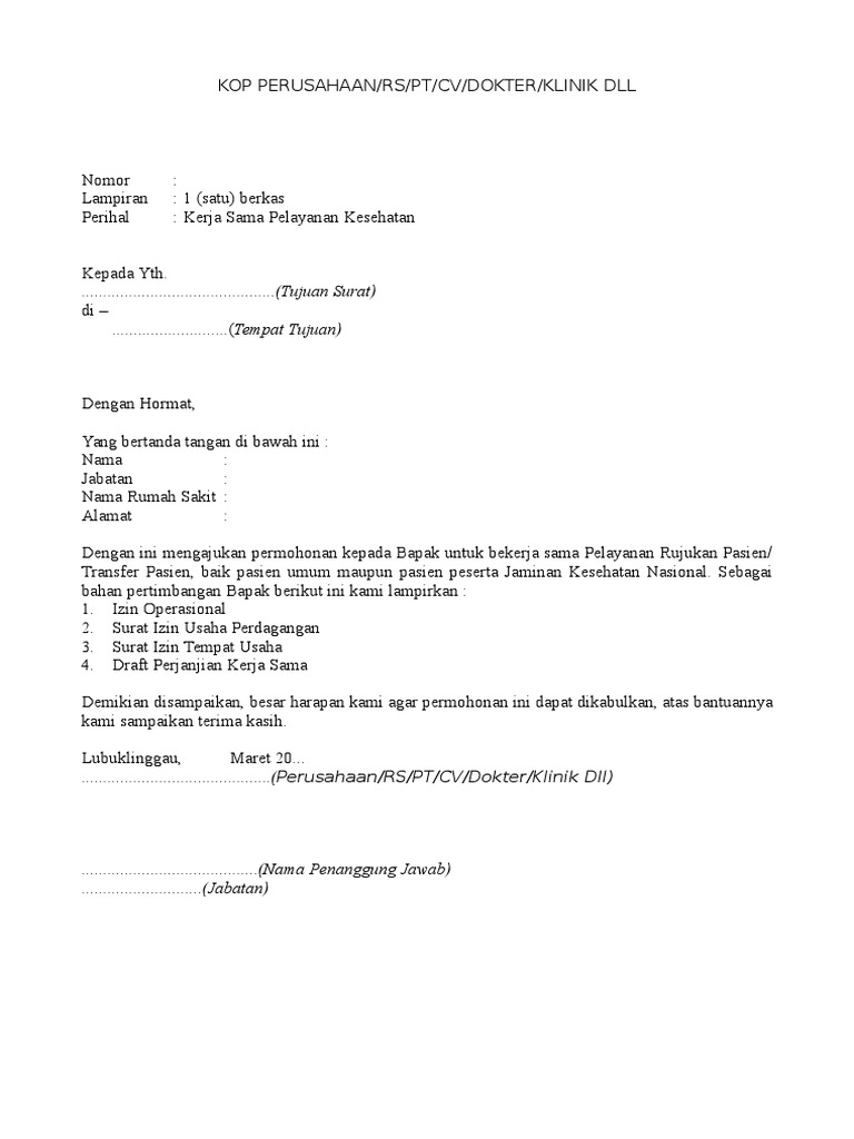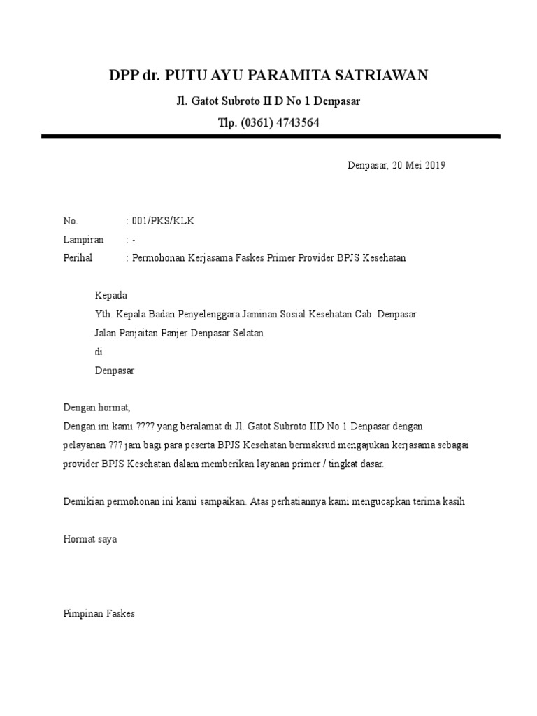 Contoh Surat Permohonan Kerjasama Dengan Bpjs - Download Kumpulan …