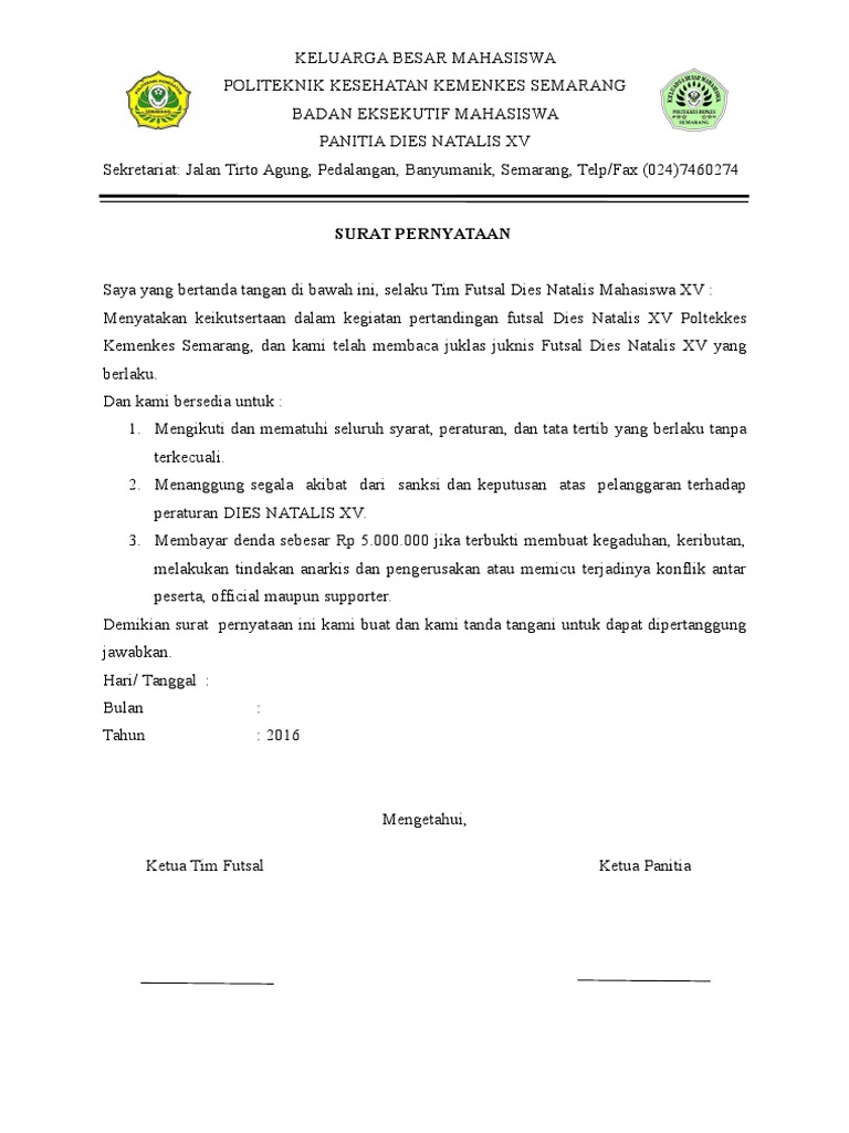 19+ Contoh Surat Pernyataan Kesanggupan Mentaati Peraturan Futsal