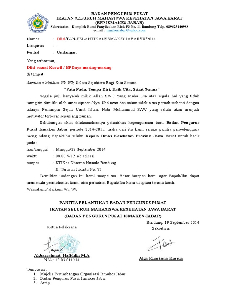 Contoh Surat Undangan Pelantikan Hmi - Sample Surat Undangan