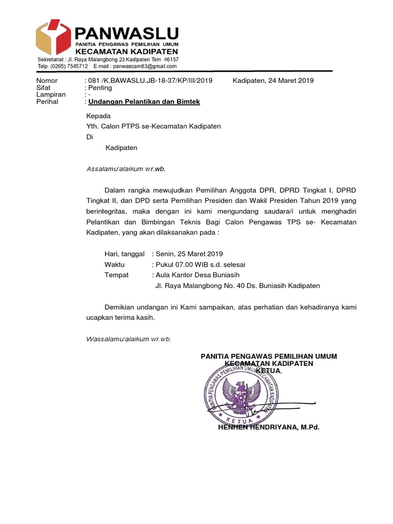 Undangan Pelantikan Calon Anggota PPK dan PPS Pemilu Tahun 2019 …