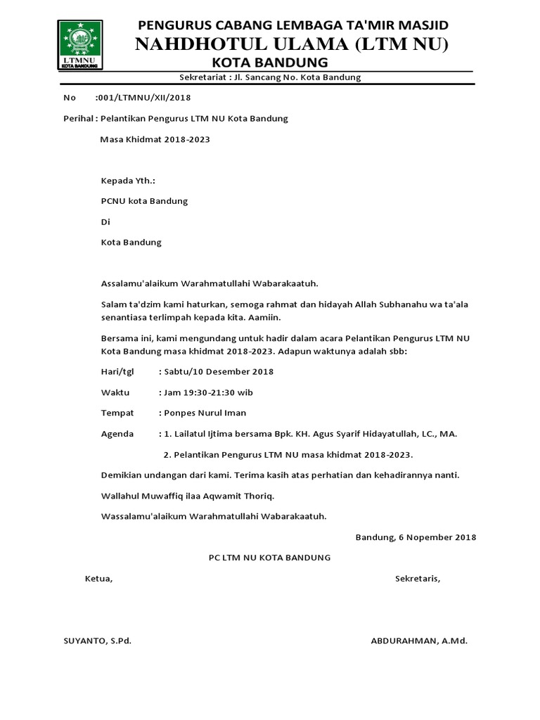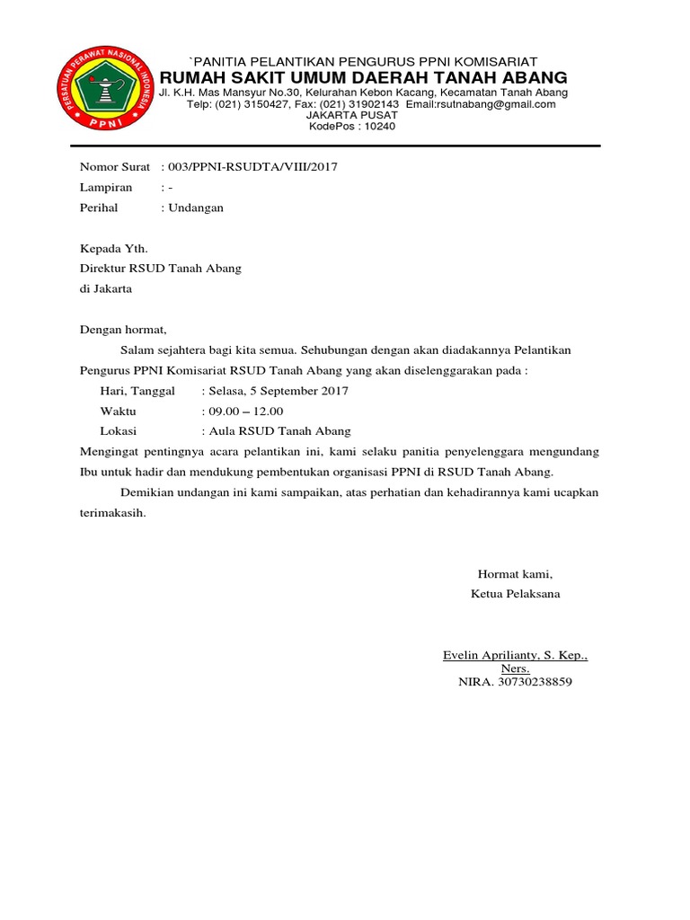 Contoh Surat Undangan Pelantikan Pengurus Organisasi - Sample …