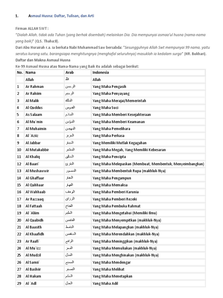 Daftar Asmaul Husna Dan Artinya Pdf - Contoh Makalah
