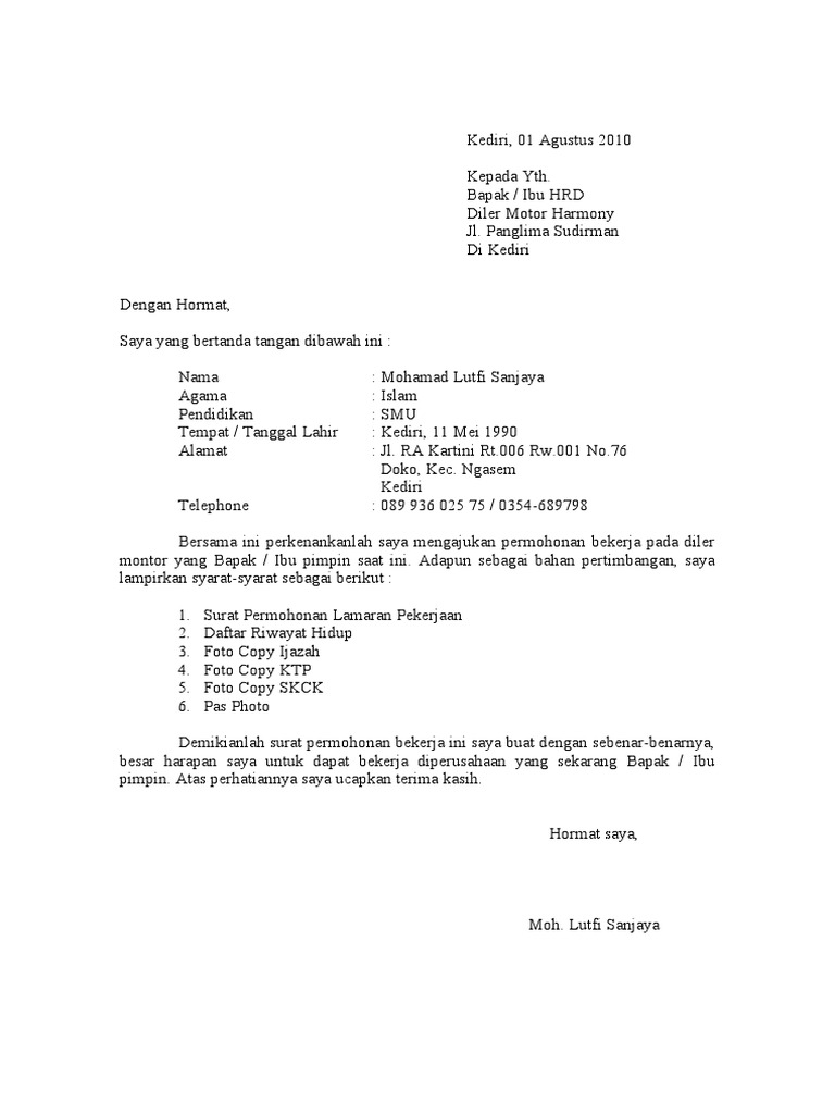DOC) Contoh surat lamaran kerja bahasa inggris dan artinya | Dwinanda Budi - Academia.edu